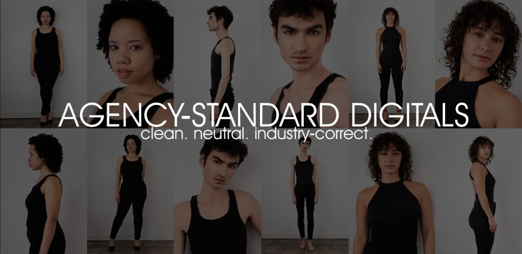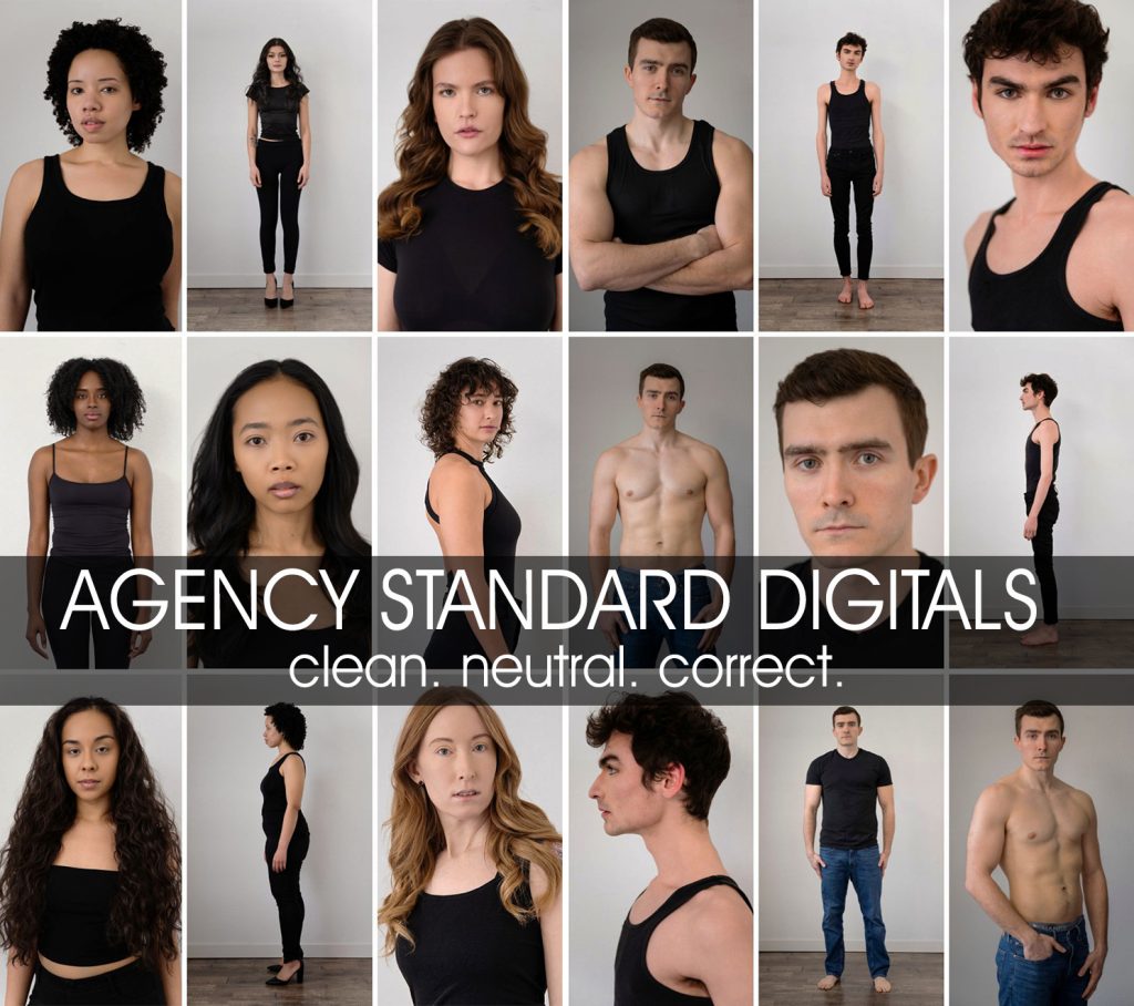 Digitals are created in line with current agency expectations, with guidance on posing, expression, grooming, and wardrobe to ensure consistency and professionalism.