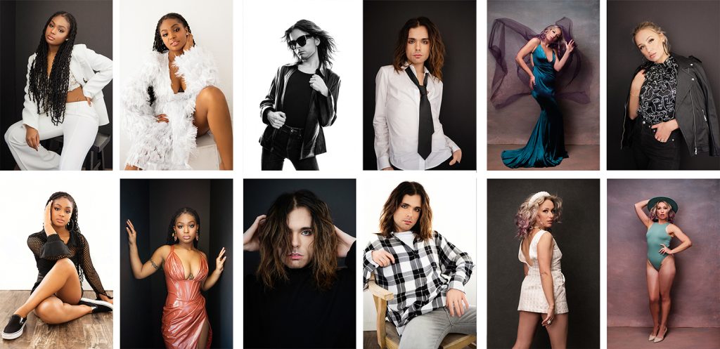 This test day supports testing new studio sets, updated lighting approaches, and wardrobe concepts. Images will be used for portfolio and promotional purposes.